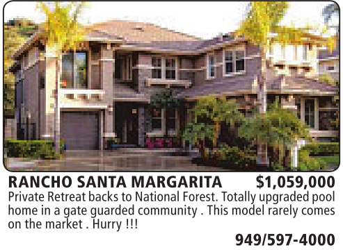 RANCHO SANTA MARGARITA $1,059,000 PrivateRetreat backstoNational Forest.Totally upgraded pool homeinagateguarded community.This modelrarelycomes on themarket.Hurry !!!