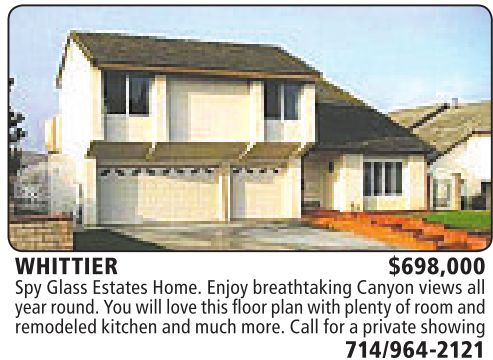 WHITTIER $698,000 SpyGlass EstatesHome.Enjoy breathtakingCanyonviews all year round. Youwill love this floorplanwithplentyofroomand remodeledkitchen andmuchmore.Callfor aprivateshowing 714/964-2121