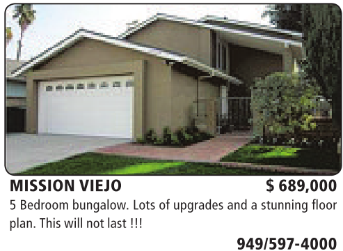 MISSION VIEJO $ 689,000 5Bedroom bungalow. Lots of upgrades and astunning floor plan. This will notlast!!!