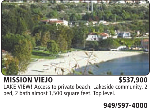 MISSION VIEJO $537,900 LAKE VIEW! Access to private beach. Lakeside community. 2 bed,2bathalmost 1,500squarefeet. Toplevel.