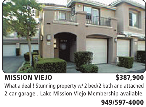 MISSION VIEJO $387,900 What adeal!Stunningpropertyw/2bed/2 bath andattached 2 car garage . Lake Mission Viejo Membership available.