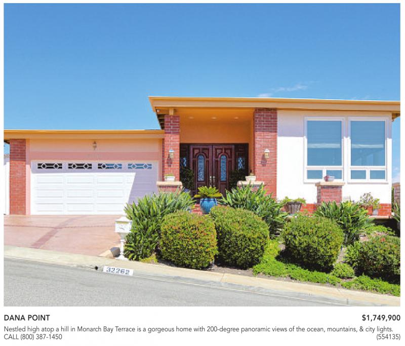 Nestled high atop a hill in Monarch Bay Terrace is a gorgeous home with 200-degree panoramic views of the ocean, mountains, & city lights. CALL (800) 387-1450 (554135)