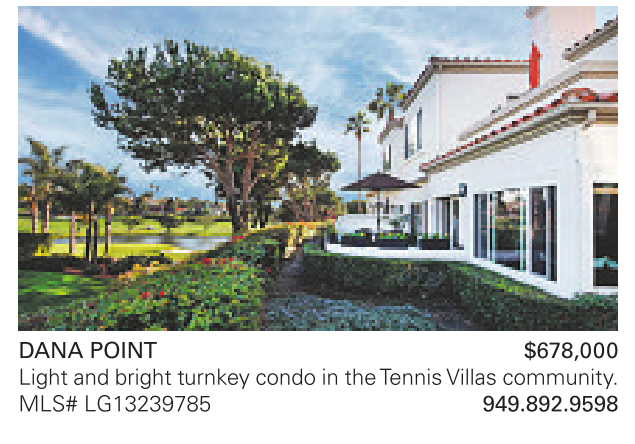 DANA POINT $678,000 Light and bright turnkey condo in the Tennis Villas community. MLS# LG13239785 949.892.9598