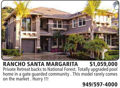 RANCHO SANTA MARGARITA $1,059,000 PrivateRetreat backstoNational Forest.Totally upgraded pool homeinagateguarded community.This modelrarelycomes on themarket.Hurry !!!