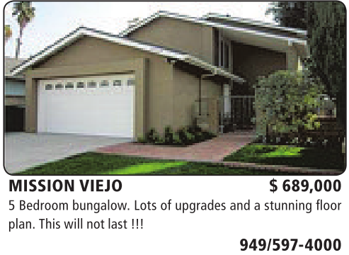 MISSION VIEJO $ 689,000 5Bedroom bungalow. Lots of upgrades and astunning floor plan. This will notlast!!!