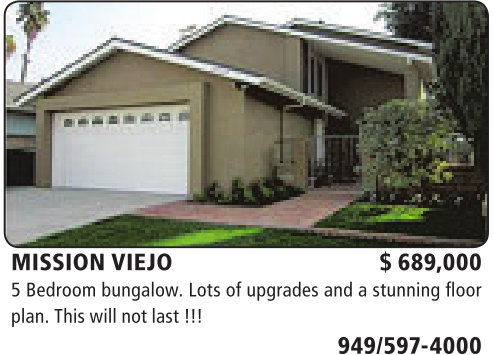MISSION VIEJO $ 689,000 5Bedroom bungalow. Lots of upgrades and astunning floor plan. This will notlast!!!