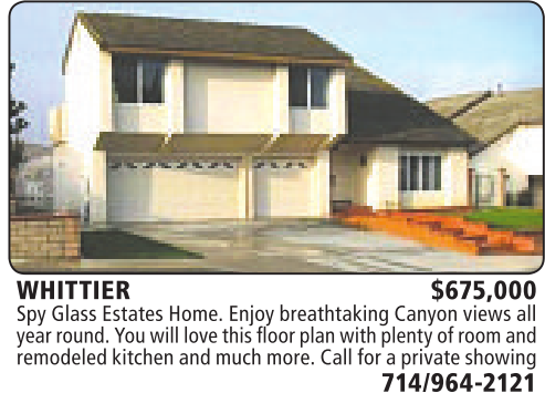 WHITTIER $675,000 SpyGlass EstatesHome.Enjoy breathtakingCanyonviews all year round. Youwill love this floorplanwithplentyofroomand remodeledkitchen andmuchmore.Callfor aprivateshowing 714/964-2121