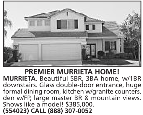 MURRIETA. Beautiful 5BR, 3BA home, w/1BR