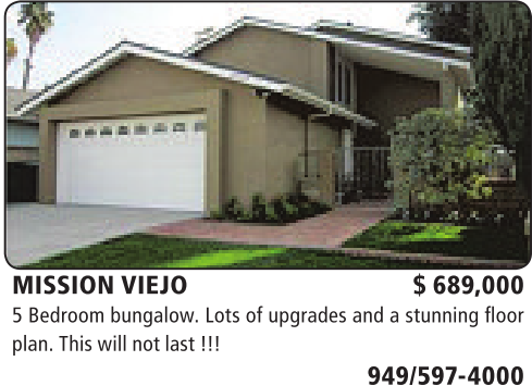 MISSION VIEJO $ 689,000 5Bedroom bungalow. Lots of upgrades and astunning floor plan. This will notlast!!!
