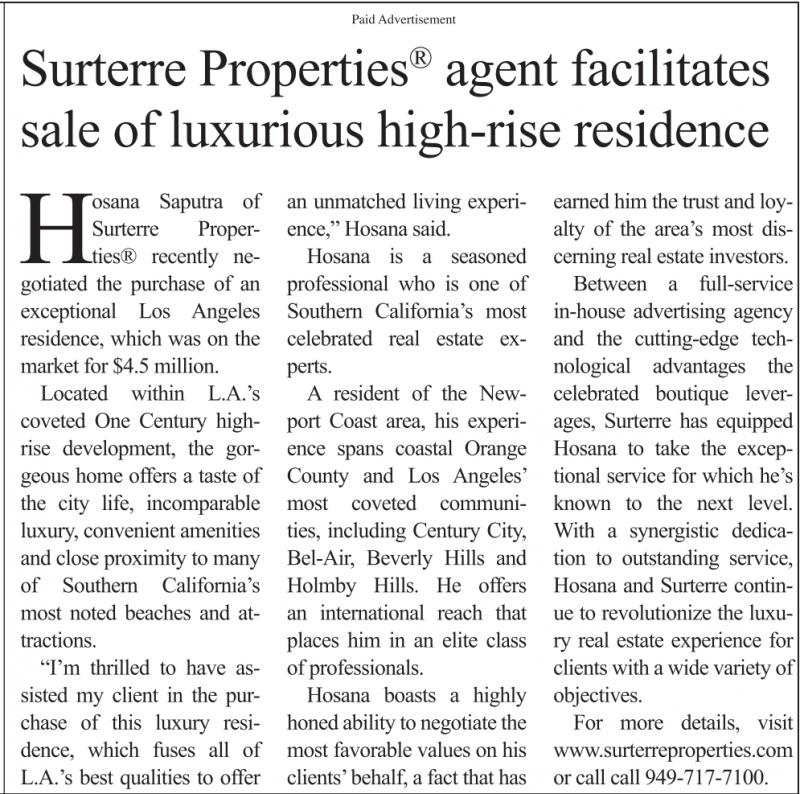 Saputra of Surterre Properties® recently negotiated the purchase of an exceptional Los Angeles residence, which was on the market for $4.5 million.