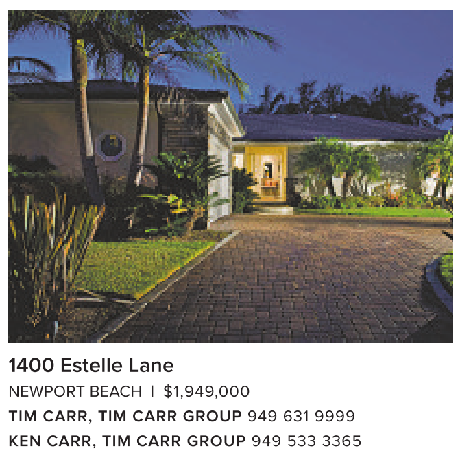 NEWPORT BEACH | $1,949,000 TIM CARR, TIM CARR GROUP 949 631 9999 KEN CARR, TIM CARR GROUP 949 533 3365