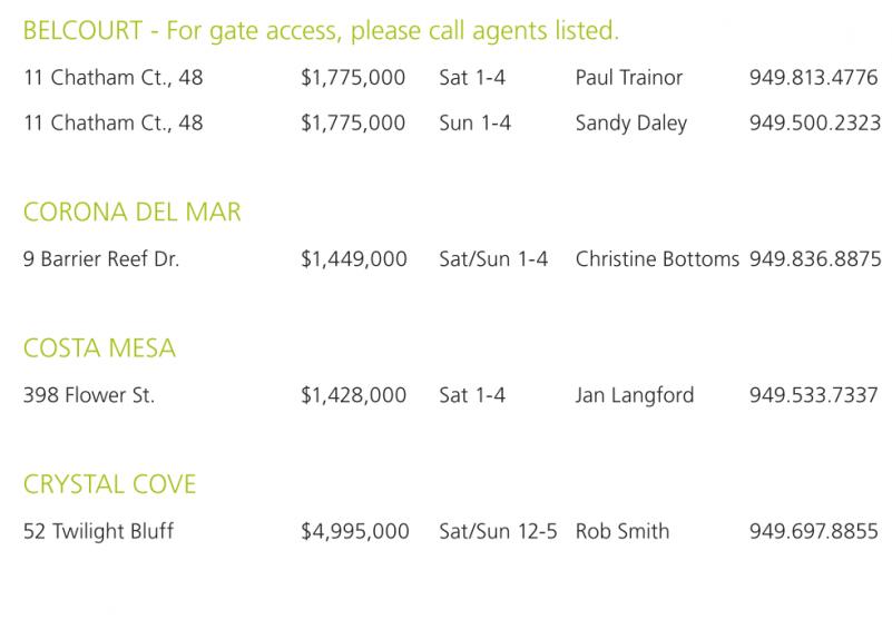 11 Chatham Ct., 48 $1,775,000 Sat 1-4 Paul Trainor 949.813.4776