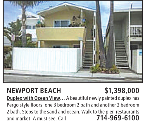 DuplexwithOcean View… Abeautifulnewly painted duplexhas Pergo stylefloors, one 3bedroom 2bathand another2bedroom 2bath. Stepstothesandand ocean. Walk to thepier,restaurants andmarket. Amustsee.Call 714-969-6100
