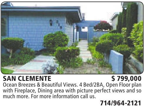 SAN CLEMENTE $ 799,000 Ocean Breezes&BeautifulViews. 4Bed/2BA,OpenFloor plan with Fireplace, Dining area with picture perfect views and so much more.For more informationcallus.