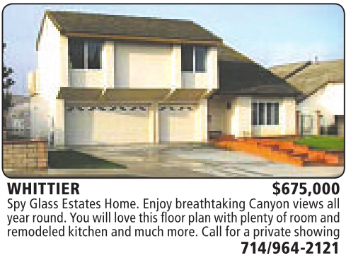 WHITTIER $675,000 SpyGlass EstatesHome.Enjoy breathtakingCanyonviews all year round. Youwill love this floorplanwithplentyofroomand remodeledkitchen andmuchmore.Callfor aprivateshowing 714/964-2121