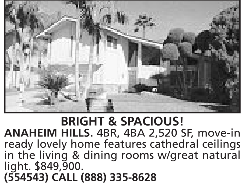 ANAHEIM HILLS. 4BR, 4BA 2,520 SF, move-in