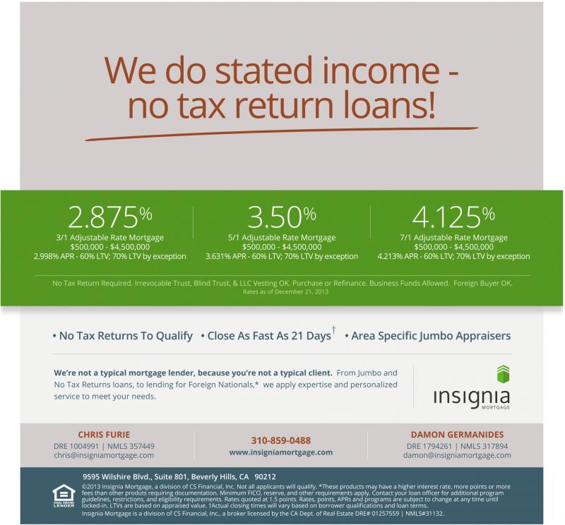 • No Tax Returns To Qualify • Close As Fast As 21 Days • Area Specific Jumbo Appraisers