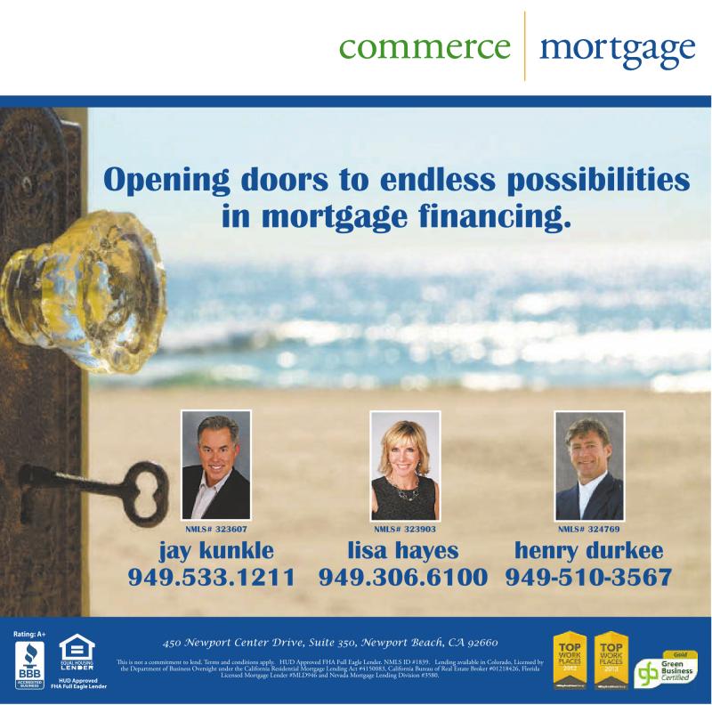 Opening doors to endless possibilities in mortgage financing. NMLS# 323607 jay kunkle 949.533.1211 NMLS# 323903 lisa hayes 949.306.6100 NMLS# 324769 henry durkee 949-510-3567 450 Newport Center Drive, Suite 350, Newport Beach, CA 92660 This is not acommitment to lend. Terms and conditions apply. HUD Approved FHA Full Eagle Lender.NMLS ID #1839. Lending available in Colorado, Licensed by the Department of Business Oversight under the California Residential Mortgage Lending Act#4150083, California Bureau of Real Estate Broker #01218426, Florida Licensed Mortgage Lender #MLD946 and Nevada Mortgage Lending Division #3580.