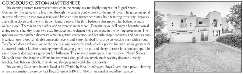 This stunning Dana Point home is listed at $1,979,000 by First Team® agent Roya Oveisi. For a private showing or more information, please contact Roya Oveisi at (949) 370-7990 or via email at roya@firstteam.com.