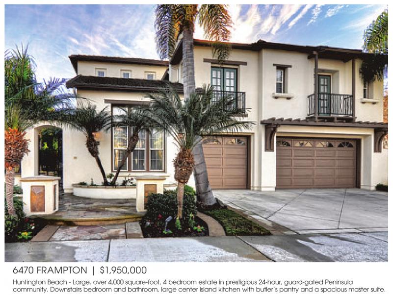 Huntington Beach -Large, over 4,000 square-foot, 4bedroom estate in prestigious 24-hour, guard-gated Peninsula community. Downstairs bedroom and bathroom, large center island kitchen with butler’s pantry and aspacious master suite.