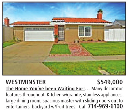 features throughout.Kitchen w/granite,stainlessappliances, largediningroom, spacious masterwithsliding doors outto entertainers backyard w/fruit trees. Call 714-969-6100