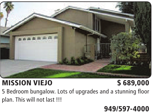 MISSION VIEJO $ 689,000 5Bedroom bungalow. Lots of upgrades and astunning floor plan. This will notlast!!!