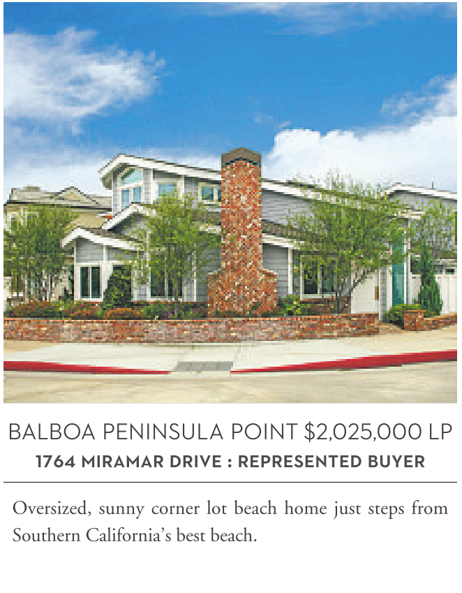 BALBOA PENINSULA POINT $2,025,000 LP 1764 MIRAMAR DRIVE : REPRESENTED BUYER