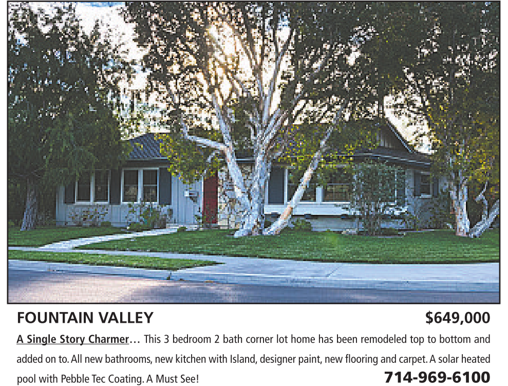 A Single Story Charmer… This 3 bedroom 2 bath corner lot home has been remodeled top to bottom and added on to.All new bathrooms,new kitchen with Island, designer paint, new flooring and carpet.Asolar heated pool with Pebble TecCoating. AMust See! 714-969-6100