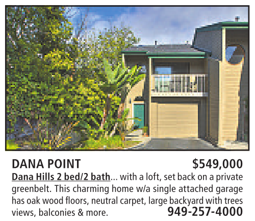 DANA POINT $549,000 Dana Hills2bed/2 bath... with aloft, setback on aprivate