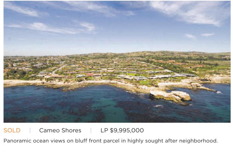 Panoramic ocean views on bluff front parcel in highly sought after neighborhood.