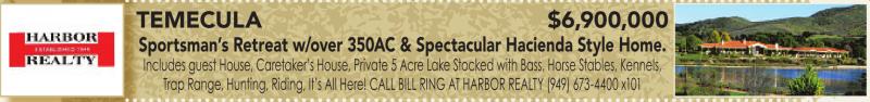 Includes guest House, Caretaker’s House, Private 5 Acre Lake Stocked with Bass, Horse Stables, Kennels, Trap Range, Hunting, Riding, It’s All Here! CALL BILL RING AT HARBOR REALTY (949) 673-4400 x101