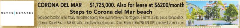 Contact Darrell Pash at 949-400-7404, darrell@metroestates.com Karen Rezek, GRI at 949-874-1119, karenrezek@gmail.com