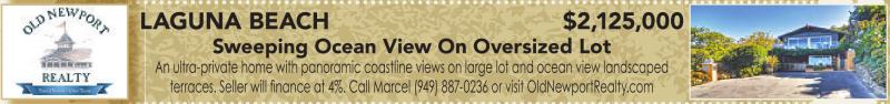 An ultra-private home with panoramic coastline views on large lot and ocean view landscaped terraces. Seller will finance at 4%. Call Marcel (949) 887-0236 or visit OldNewportRealty.com