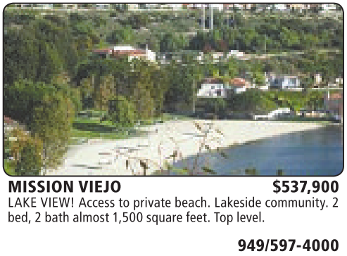 MISSION VIEJO $537,900 LAKE VIEW! Access to private beach. Lakeside community. 2 bed,2bathalmost 1,500squarefeet. Toplevel.