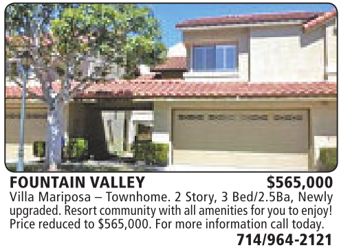 FOUNTAIN VALLEY $565,000 Villa Mariposa – Townhome. 2 Story, 3 Bed/2.5Ba, Newly