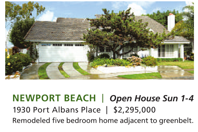 NEWPORT BEACH | Open House Sun 1-4 1930 Port Albans Place | $2,295,000 Remodeled five bedroom home adjacent to greenbelt.
