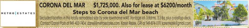 Contact Darrell Pash at 949-400-7404, darrell@metroestates.com Karen Rezek, GRI at 949-874-1119, karenrezek@gmail.com