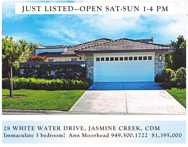 28 WHITE WATER DRIVE, JASMINE CREEK, CDM Immaculate 3 bedroom! Ann Moorhead 949.500.1722 $1,395,000