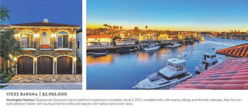 17022 BARUNA | $2,985,000 Huntington Harbour: Spectacular Davenport Island waterfront masterpiece completely rebuilt in 2010. Incredible entry with soaring ceilings and dramatic staircase. Main floor ensuite bedroom master with luxurious his/hers baths and balcony with harbour and ocean views.