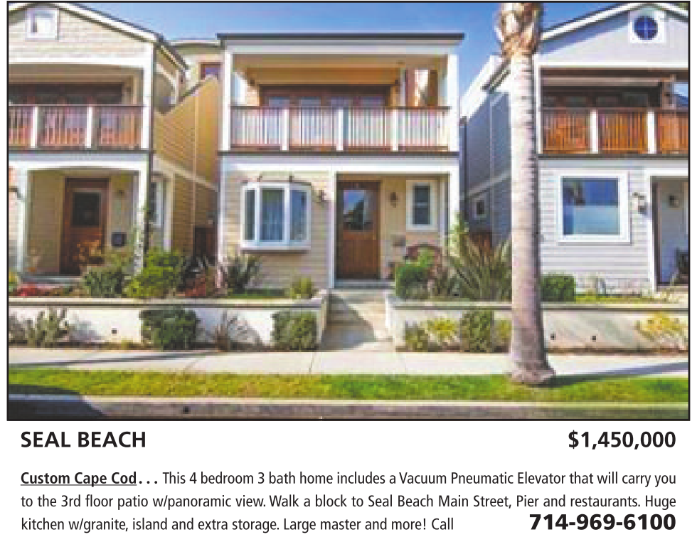 Custom Cape Cod… This 4bedroom 3bath home includes aVacuum Pneumatic Elevator that will carry you to the 3rd floor patio w/panoramic view.Walk a block to Seal Beach Main Street, Pier and restaurants.Huge kitchenw/granite,island and extra storage.Large master and more! Call 714-969-6100