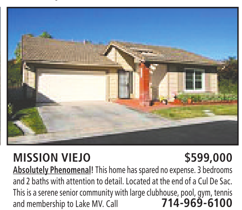 MISSION VIEJO $599,000 Absolutely Phenomenal! This homehas spared no expense.3bedrooms