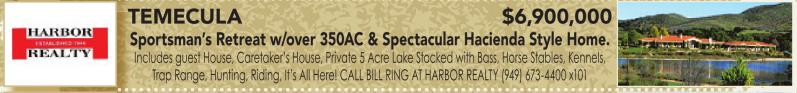 Includes guest House, Caretaker’s House, Private 5 Acre Lake Stocked with Bass, Horse Stables, Kennels, Trap Range, Hunting, Riding, It’s All Here! CALL BILL RING AT HARBOR REALTY (949) 673-4400 x101
