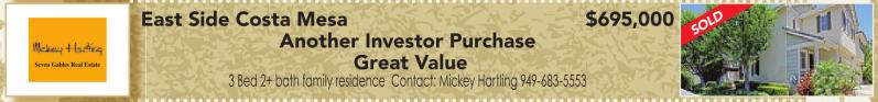 3 Bed 2+ bath family residence Contact: Mickey Hartling 949-683-5553