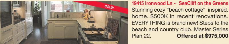 19415 Ironwood Ln ~ SeaCliff on the Greens Stunning cozy “beach cottage” inspired. home. $500K in recent renovations. EVERYTHING is brand new! Steps to the beach and country club. Master Series Plan 22. Offered at $975,000