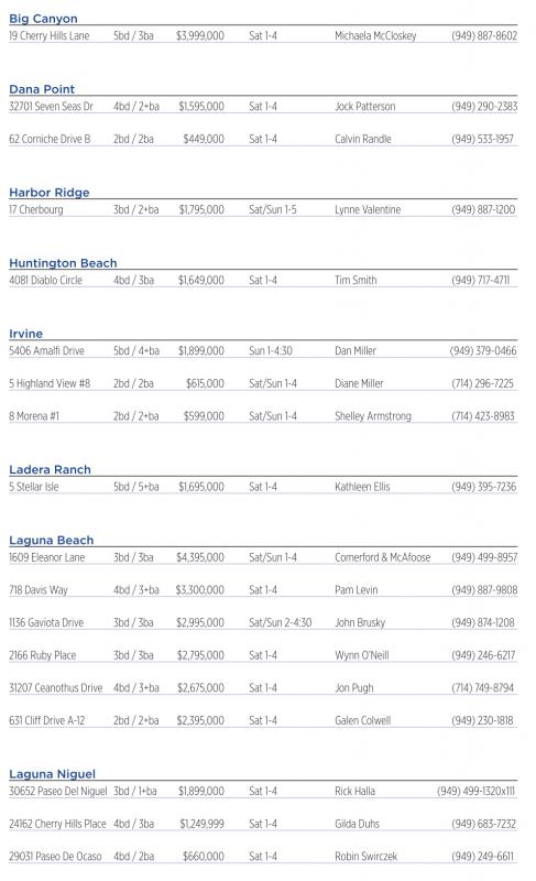 Dana Point 32701Seven Seas Dr 4bd /2+ba $1,595,000 Sat1-4 Jock Patterson (949) 290-2383