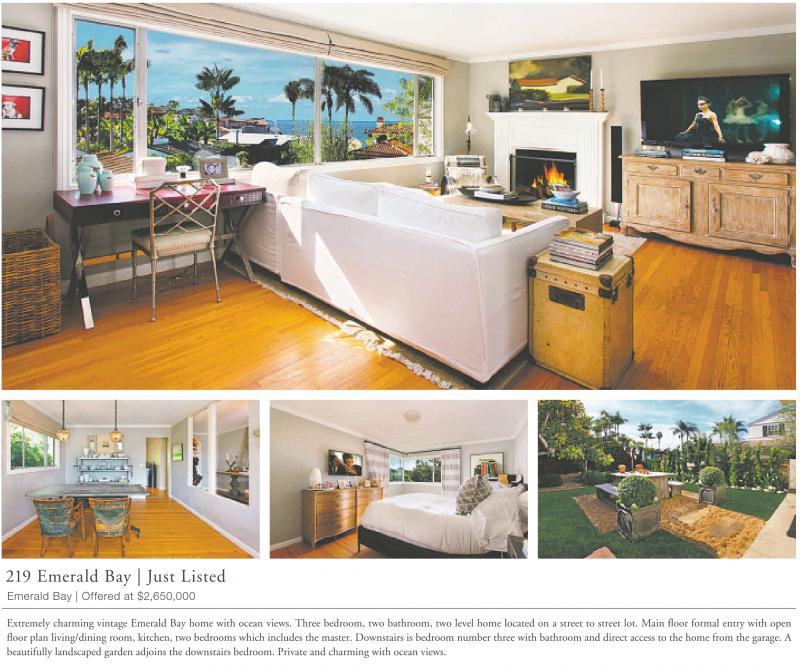 Extremely charming vintage Emerald Bay home with ocean views. Three bedroom, two bathroom, two level home located on a street to street lot. Main floor formal entry with open floor plan living/dining room, kitchen, two bedrooms which includes the master. Downstairs is bedroom number three with bathroom and direct access to the home from the garage. A beautifully landscaped garden adjoins the downstairs bedroom. Private and charming with ocean views.