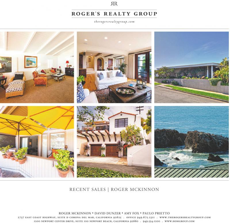 r o g e r’s r e a lt y g r ou p therogersrealtygroup.com RECENT SALES | ROGER MCKINNON ROGER MCKINNON • DAVID DUNZER • AMY FOX • PAULO PRIETTO 2737 east coast highway, suite d corona del mar, california 92625 . office 949.675.2311 . www.therogersrealtygroup.com 1200 newport center drive, suite 100 newport beach, california 92660 . 949.554.1200 . www.homgroup.com