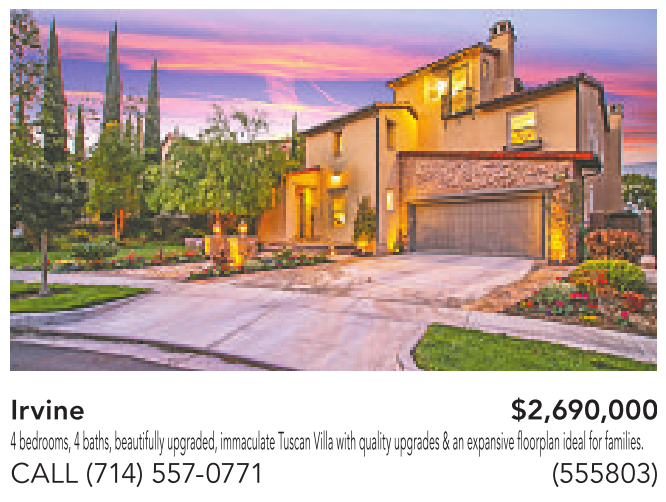 Irvine $2,690,000 4bedrooms, 4baths, beautifully upgraded, immaculate Tuscan Villa with quality upgrades &anexpansive floorplan ideal for families. CALL (714) 557-0771 (555803)