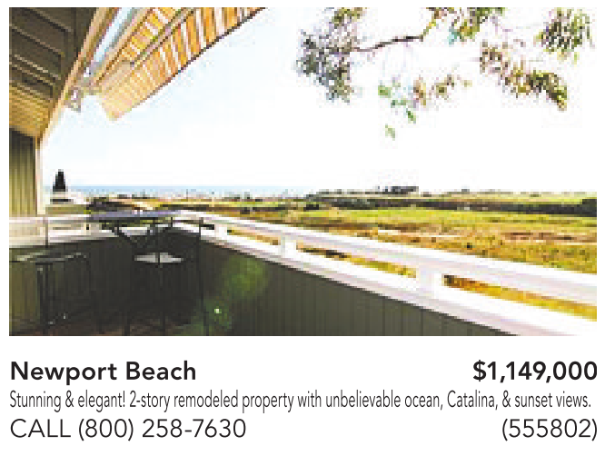 Newport Beach $1,149,000 Stunning &elegant! 2-story remodeled propertywith unbelievable ocean, Catalina, &sunset views. CALL (800) 258-7630 (555802)