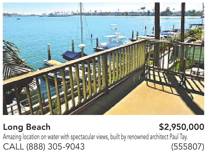 Long Beach $2,950,000 Amazing location onwater with spectacular views, built byrenowned architect Paul Tay. CALL (888) 305-9043 (555807)